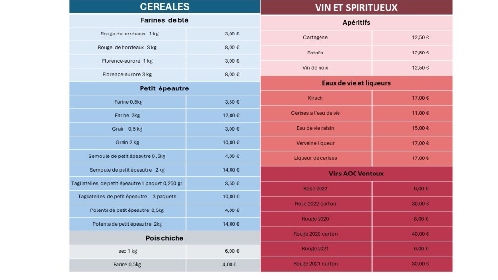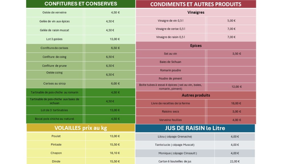 Voici les produits de la ferme en vente à la boutique, issus de notre production, tous bien sûr en agriculture biologique. Pour se faire plaisir, pour offrir, pour tous les jours !